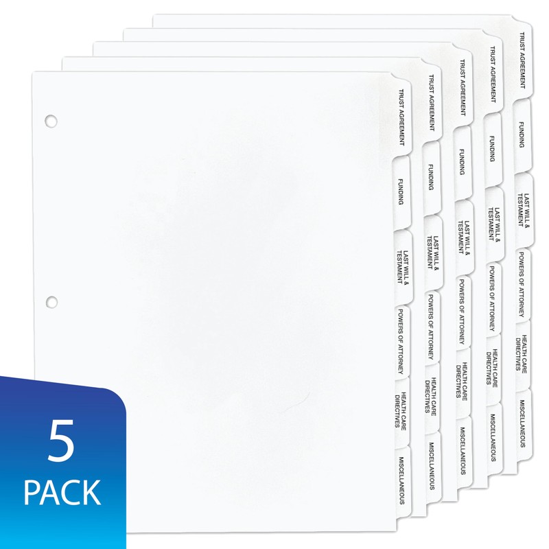 Estate Planning Index Tab Dividers. 5 Sets of 6 tabs per Package.