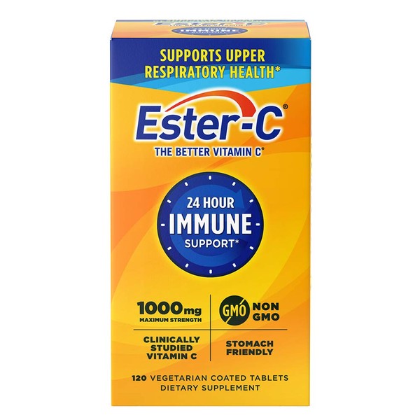 Ester-C Vitamin C 1000 mg Coated Tablets, Immune System Booster, Stomach-Friendly Supplement, 120 Count