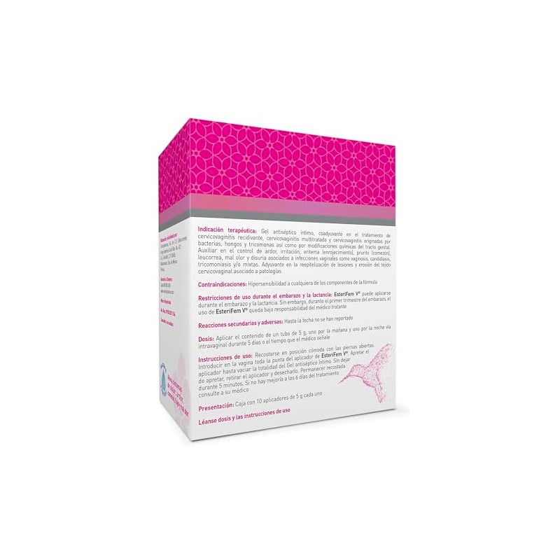 Esterifem V Gel Intimo Antiséptico para Infecciones Vaginales con 10 Aplicadores de 5g