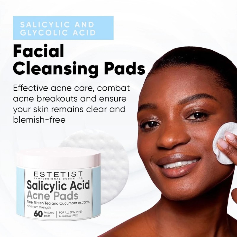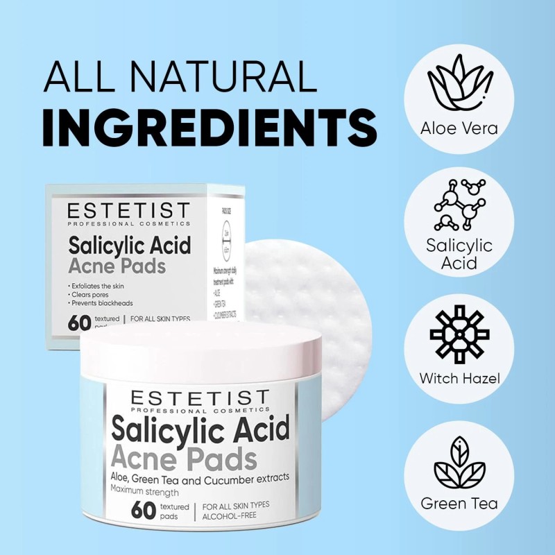 Estetist Best Glycolic & Salicylic Acid Face Pads, Exfoliating Acne Pads with Witch Hazel