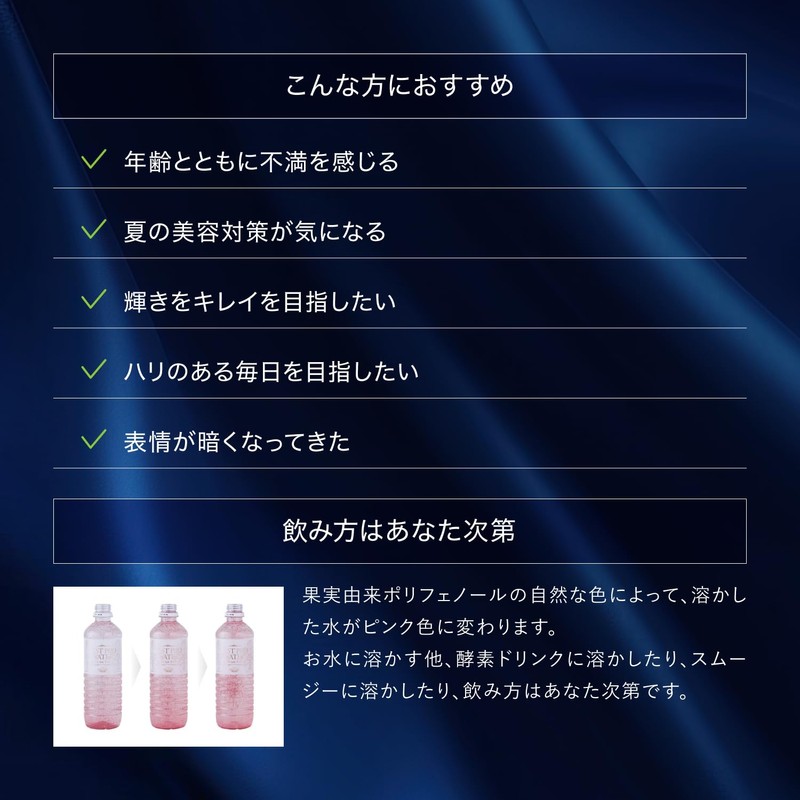 - Concentrated 4 beauty ingredients: This product contains pomegranate extract, mangostein, cherry blossom extract, and red orange extract, supporting the beauty of the interior
