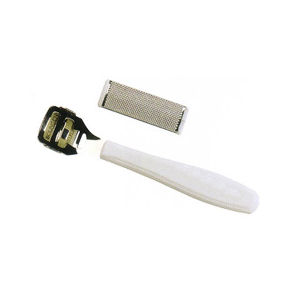 Safely removes corns & calluses. Attach rasp to smooth out.