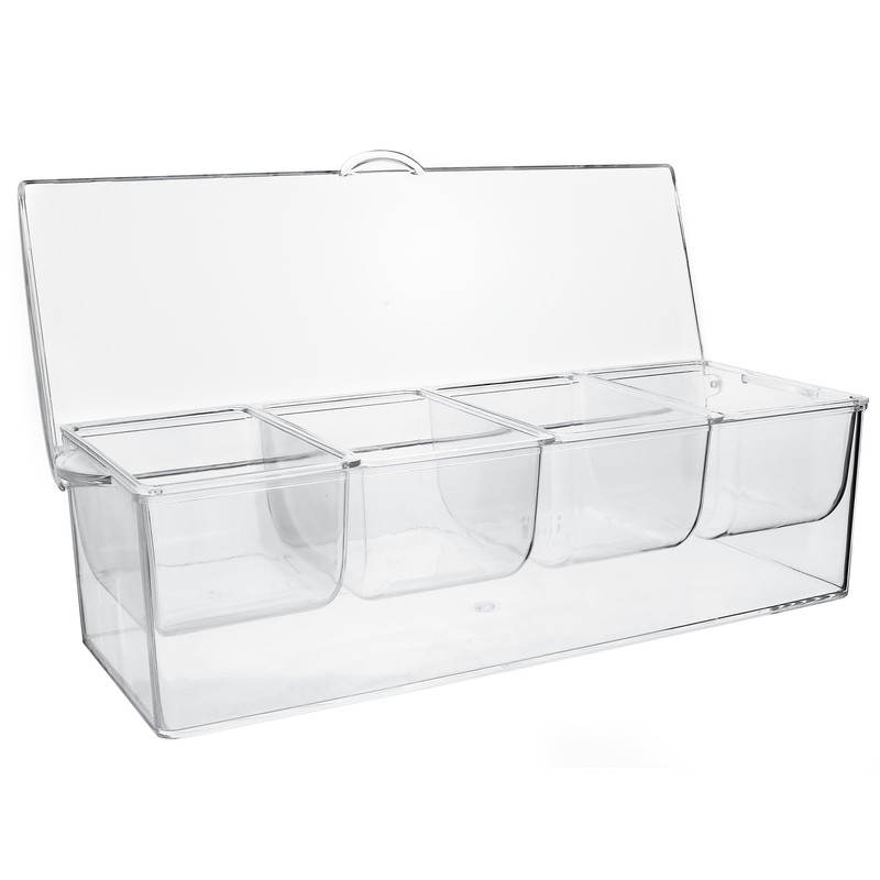 Estilo Chilled Condiment Server with Lid, Mimosa Bar Condiment Organizer on Ice, Clear Container W/ 4-Section Organizer, Perfect as Mimosa Bar Kit, Condiment Server Caddy on Ice - Mimosa Bar Supplies.
