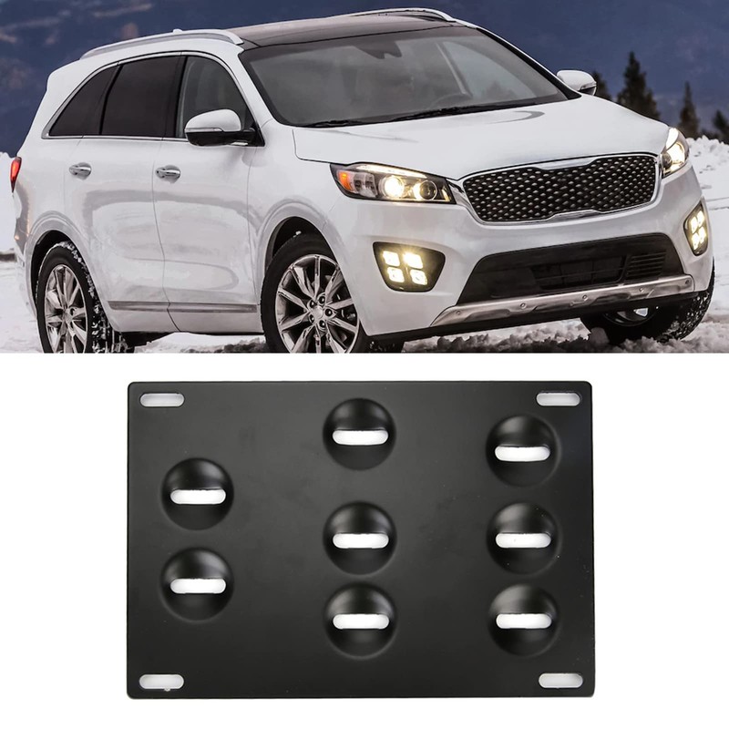 Estink Soporte de Placa de Matrícula con Gancho de Remolque Delantero, Soporte de Montaje de Placa de Matrícula con Gancho de Remolque Delantero Universal, Soporte Ajustable de 8 Agujeros