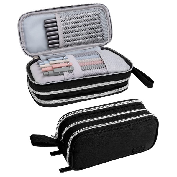 Estuche para Lapices de Gran Capacidad, SHANDABULIU Estuche Lapicera Multifuncional con Tres Cremalleras, Estuche para Lapiceras Organizadoras Portátil, para Una Amplia Gama de Aplicaciones (Negro)