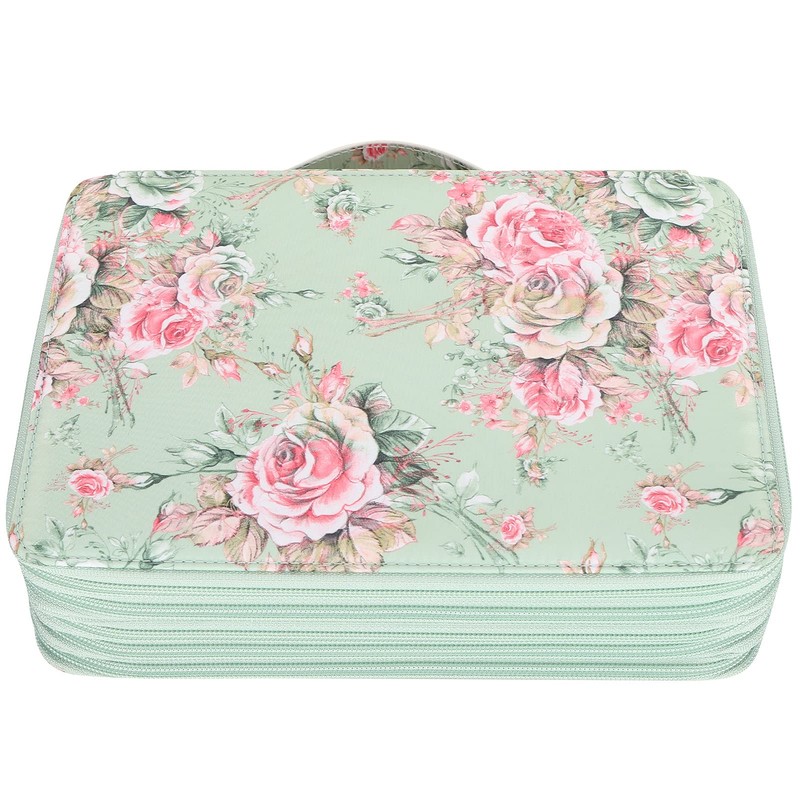 Estuche para Lápices Portátil, Estuche para Lápices de Gran Capacidad, Portalápices, 29 X 21 X 10 Cm Estuche para Lápices con Cremallera Multicapa con Estampado de Rosas (Rosas