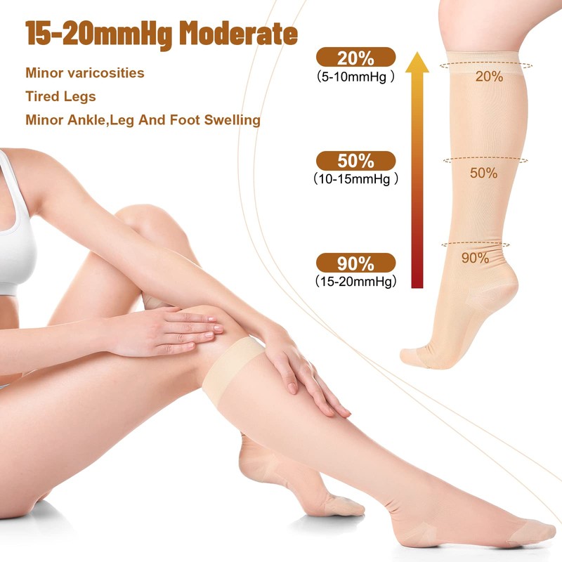- Funcional y elegante: las medias de compresión ligeras no solo tienen función de compresión, sino que también tienen un aspecto elegante, que se ven como medias de seda ordinarias y son adecuadas para llevar durante todo el año; proporcionarán un efecto adicional de ajuste estrecho y compresión graduada para reducir la hinchazón, piernas cansadas y doloridas, viajes, sentarse o estar de pie durante mucho tiempo, problemas de venas del embarazo