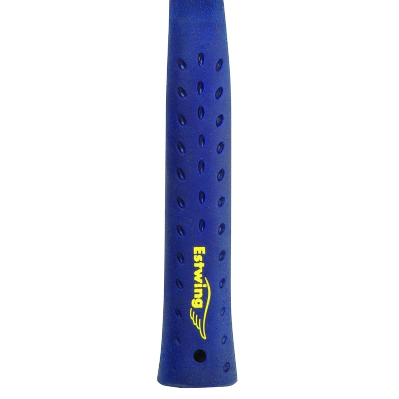 Estwing's 40 oz. lineman's hammer is forged in 1-piece solid steel, and fully polished. Balance and temper are unsurpassed. It has a bonded and molded on Shock Reduction Grip that reduces shock up to 70% and will not come off. Estwing hammers are the only hammers that can make this claim. Both the head and handle are forged in 1-piece solid steel and have an attractive blue UV coating. This is the perfect hammer for general, and light to medium duty. Nail hammers are designed for striking common and finishing nails and nail sets. Made in USA. Protect your eyes from flying particles and dust. Always wear safety goggles. Bystanders shall also wear safety goggles.