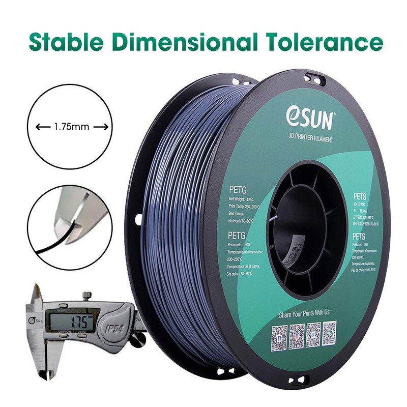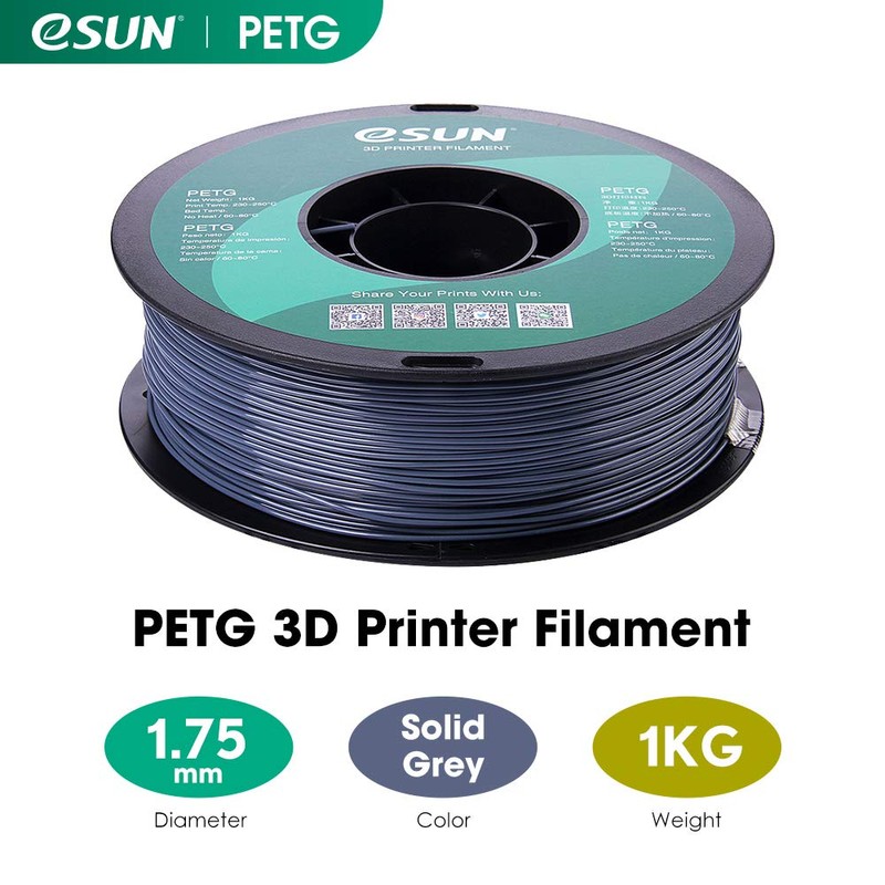 eSUN 3D 1.75mm Solid Gray PETG 3D Printer Filament 1KG Spool (2.2lbs), Dimensional Accuracy +/- 0.03 mm, 1.75mm Solid Opaque Gray