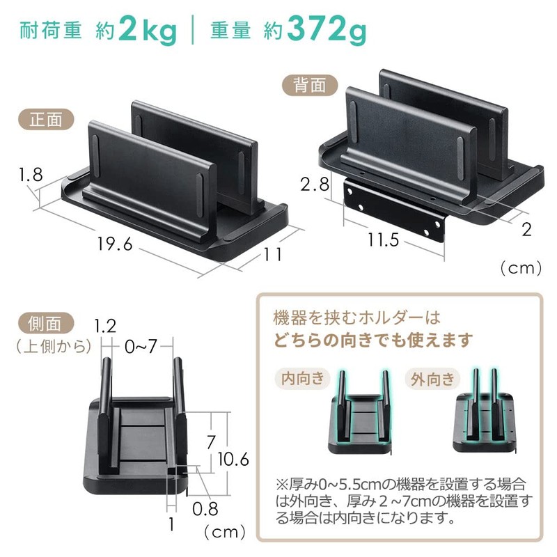 • (Compatible with Installation Width up to 2.8 inches (7 cm)) The position of the holder can be adjusted, so the depth and width can be adjusted according to the device you store