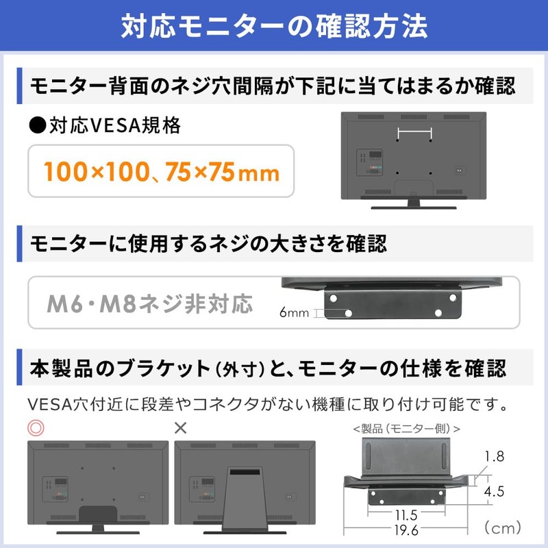 Since only two parts of the VESA hole are used, it can also be used with a monitor arm.