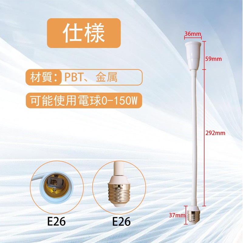 - **BULB BASE** E26 to E26 extension socket has a traditional E26 base that can be used to AC100V/200V and can be replaced with a variety of bulbs, and can be used within 300W of bulbs. The base material is excellent, heat resistant, cold resistant, flame retardant, etc