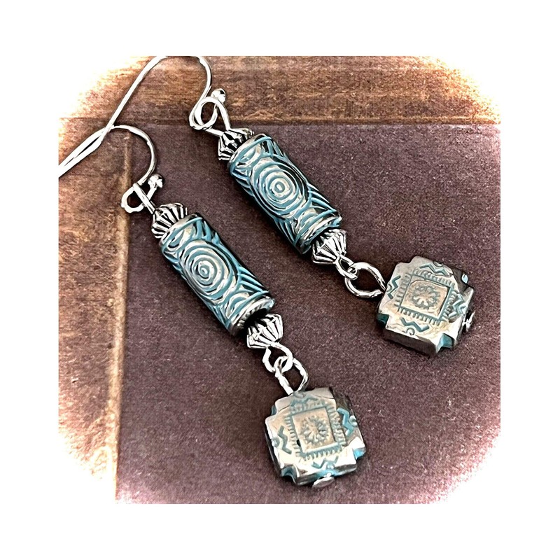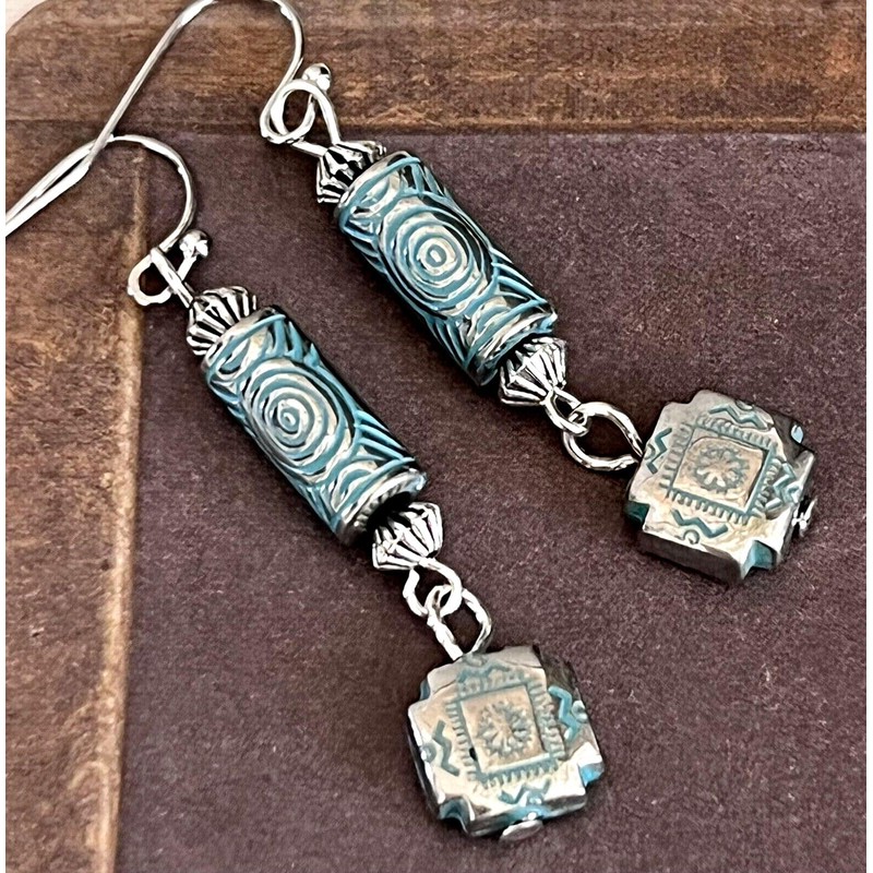 Etched Silver and Patina Dangle Earrings. Jewelry Earrings for Women #3298FE3522