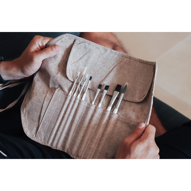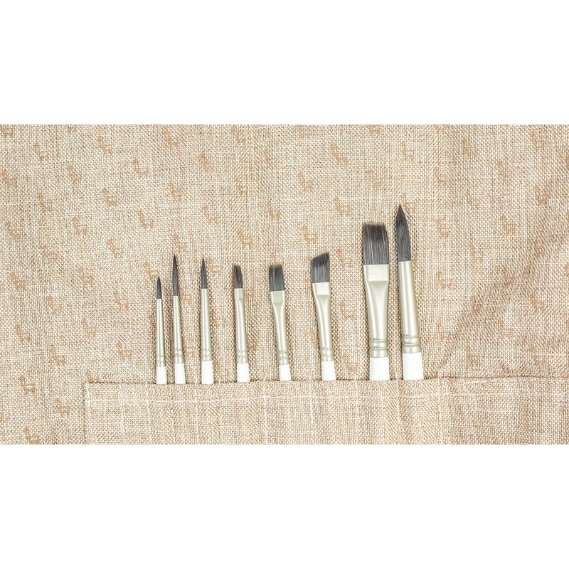 Etchr Gouache Brush Set - Set of 8 Gouache - Vegan-Friendly Paint Brush Set - Travel Brushes with Linen Roll-Up Pouch