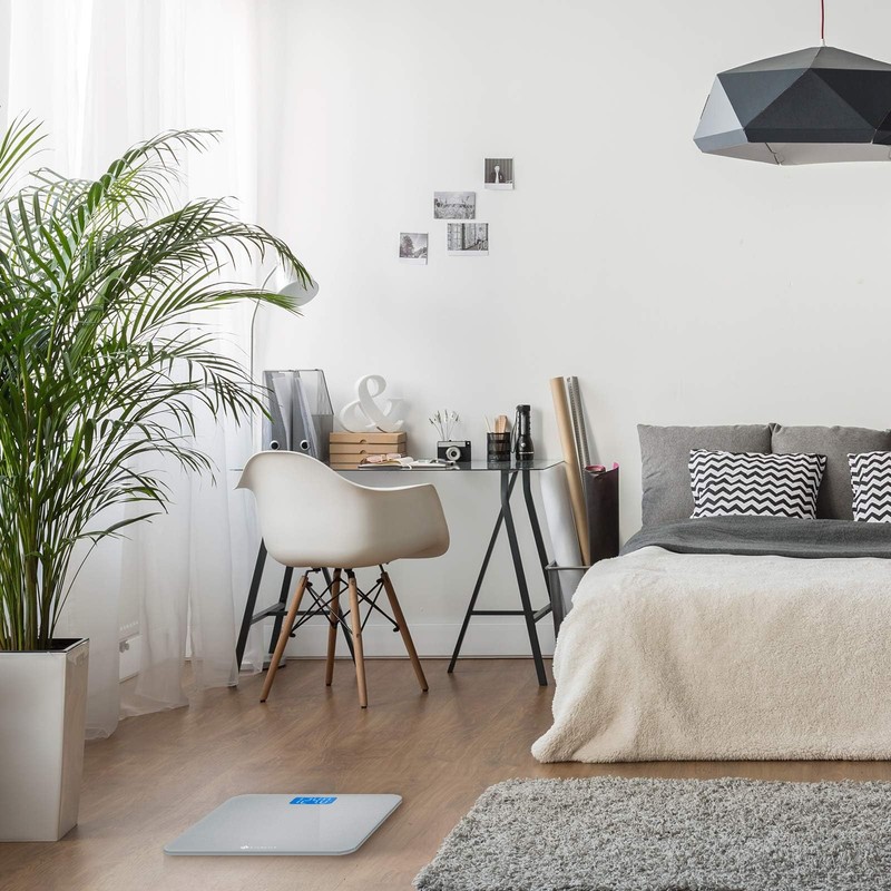 Staying fit and healthy is a numbers game—that's why this professional digital scale uses four highprecision sensors to instantly deliver trustworthy results with a 0.2 lb accuracy resolution. Reading your results is simple thanks to the sizeable, sharp LCD display and seamless unit conversion with a single button.Note: 1. Clear the scale: step on the scale until the display lights up, then step off until the scale shows "0.0." Do this each time you are measuring your weight. 2. Try weighing first thing in the morning (after using the restroom) and with minimal clothing to prevent deviation or skewed readings.
