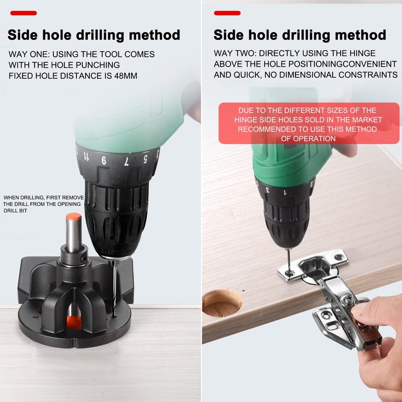 - Upgraded three bearing drill sleeve: concealed hinge jig top, middle and bottom three bearing drill sleeve, the total height of the drill sleeve can reach 2cm, the higher the height, the smaller the drill oscillation, the more accurate the positioning opening.