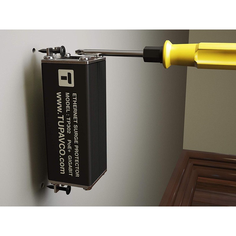 Ethernet Surge Protector PoE+ Gigabit - Gas Discharge Tube for Full Protection - Mounting Flange - RJ45 Lightning Suppressor - LAN Network CAT5/CAT6 Thunder Arrestor - GbE 1000 Mbps - Tupavco TP302