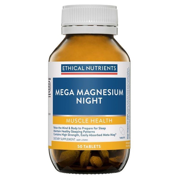 Ethical Nutrients Mega Magnesium Night tablets supports healthy sleeping patterns & calms the mind & body in preparation for bedtime. Made with easily absorbed magnesium & passionflower in a convenient night time tablet.