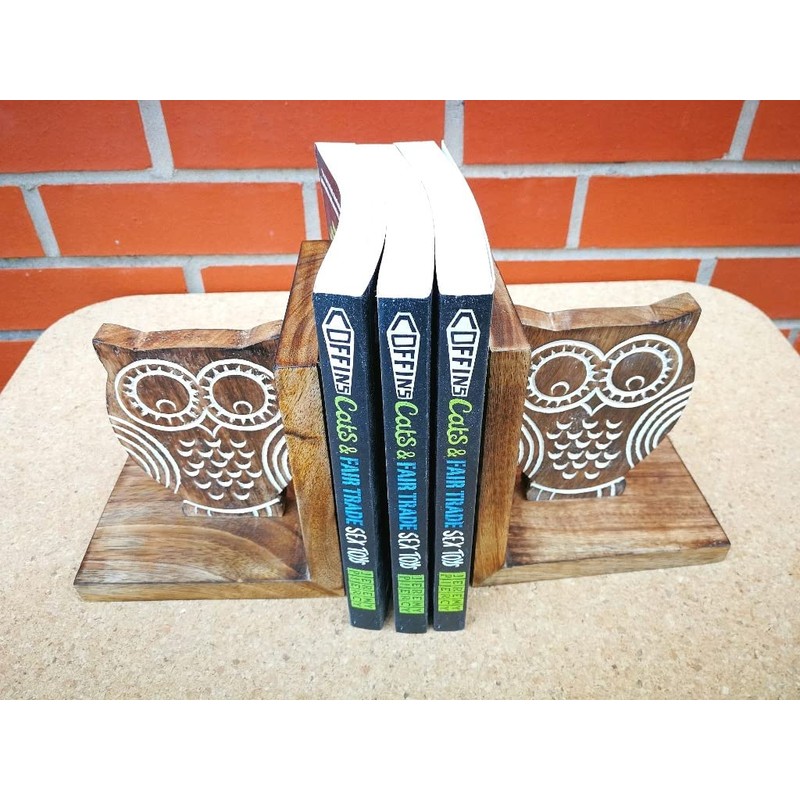 - Decorative Wooden Owl Bookend Height 6 Inch, Width 4 Inch, Length 5.5 Inch, Our Bookends One of a Kind Elegant Design that will not only be functional to keep your books upright and organized but also great decorative bookend that will enlighten your living space, work space, office!