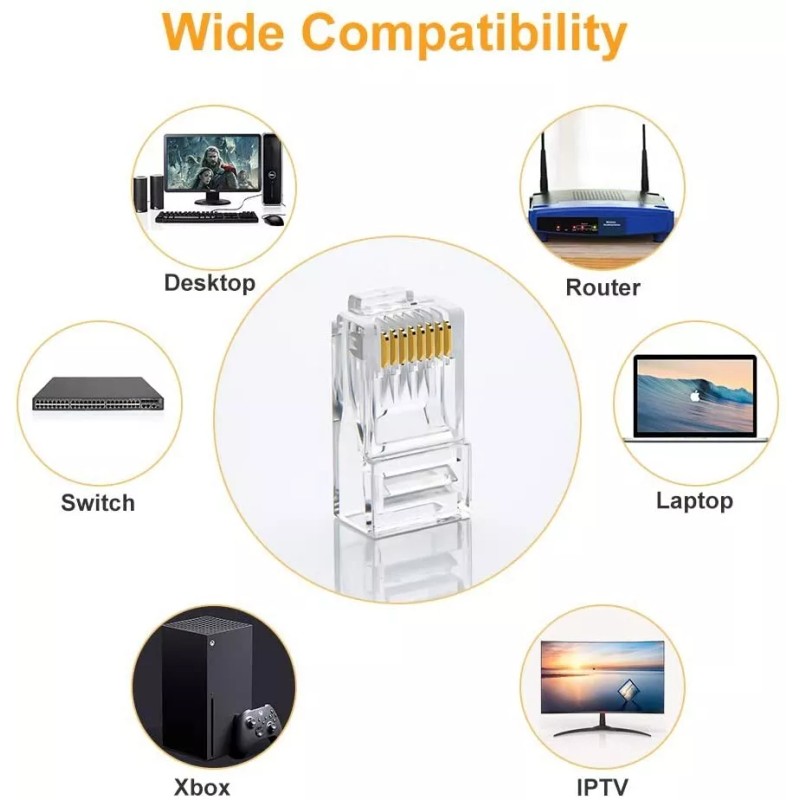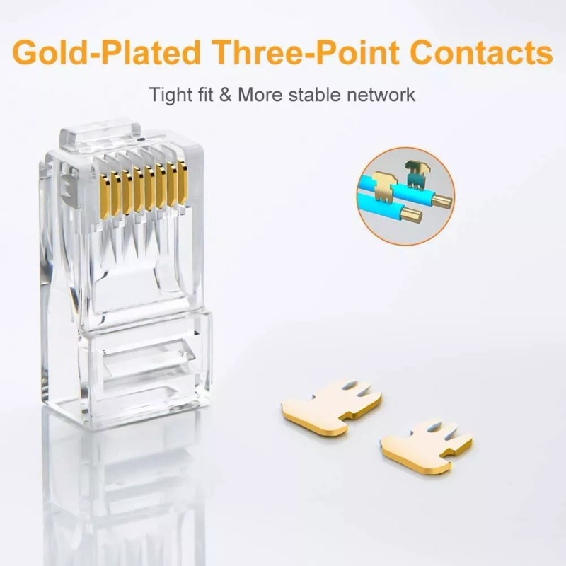 ETS RJ45 Connectors 100-PACK RJ45 Ends, Cable Crimp Ethernet CAT6 Connector Male