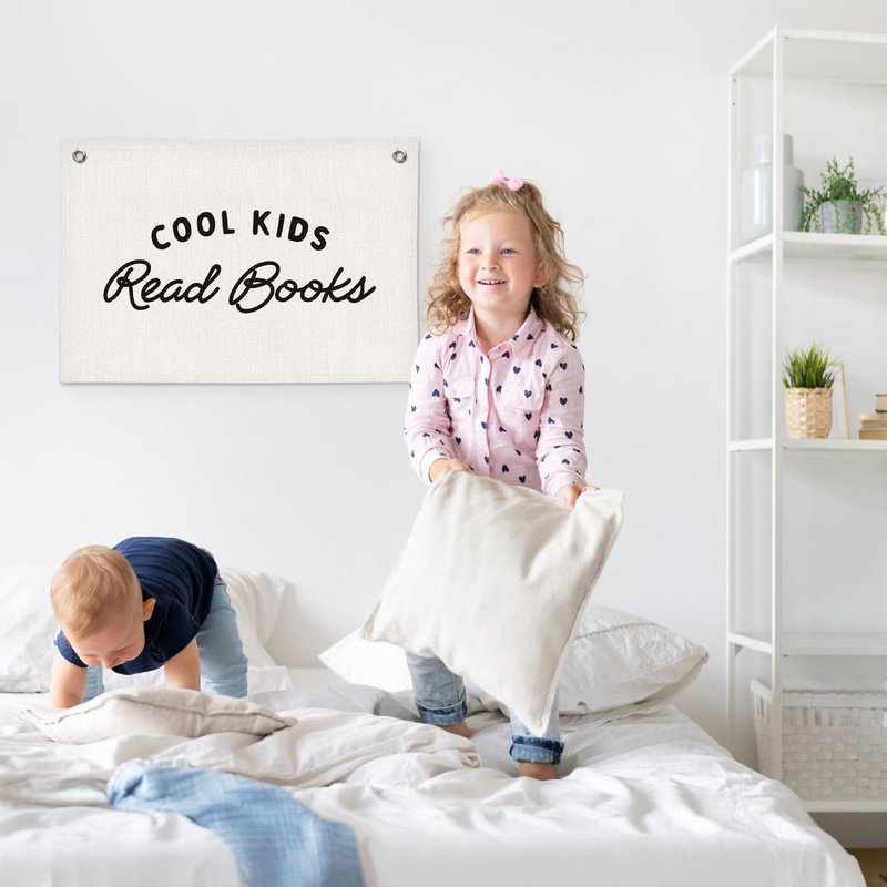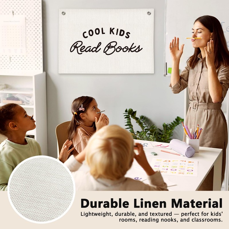 ETVISO Cool Kids Read Books Reading Room Decor - Linen Banner Wall Hanging Canvas Banner Flag Decor for Kids Nursery Toddler Reading Corner Nook Classroom Library