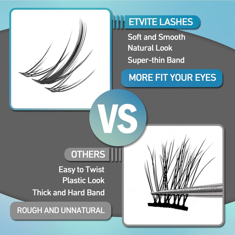 ETVITE Individual Lash Extensions 3D Lash Clusters, Fishtail Spikes Natural Look Handmade, Volume Home Individual Lashes for Daily Use (Fishtail & Spike Lashes 12mm)