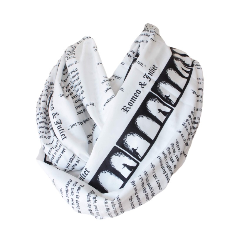 Shakespeare Romeo and Juliet Book Infinity Scarf Loop Scarf, Circle Scarf, spring - fall - summer - winter fashion. Machine Gentle Cool Wash with similar colors, Gentle Iron, Lay Flat To Dry, Do Not Wring Produced in smoke and pet free environment.