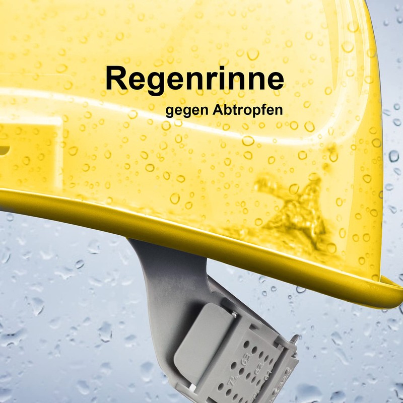 Long-term proven construction protective helmet, large protective surface thanks to helmet shape with pulled down neck part, high wearing comfort and secure fit thanks to ergonomically shaped and height-adjustable inner system.
