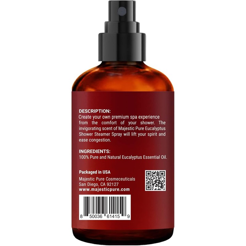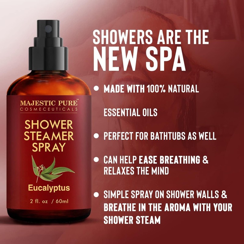- Invigorating Shower Spray – Majestic Pure Eucalyptus Shower Steamer Spray made with 100% pure and natural Eucalyptus Essential Oil for a premium shower experience