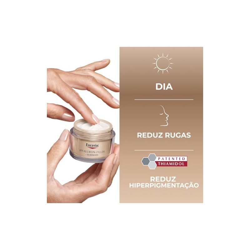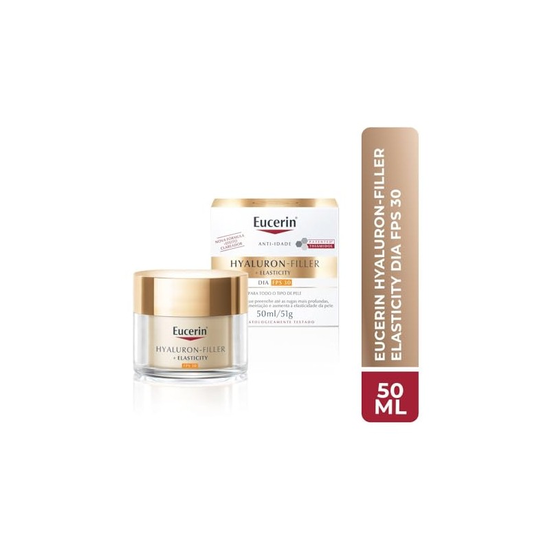 - Filler + Elasticity Crema Facial de Día FPS 30 es una crema antiarrugas de uso diario antienvejecimiento que ayuda a rellenar las arrugas, mejorar la elasticidad de la piel y corregir las manchas de la edad. Su fórmula única proporciona múltiples beneficios antienvejecimiento. La innovadora mezcla de Eucerin de Ácido Hialurónico de alto y bajo peso molecular ayuda a rellenar visiblemente las arrugas y previene el envejecimiento prematuro. El nuevo Complejo Colágeno
