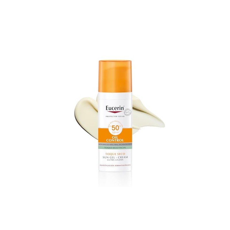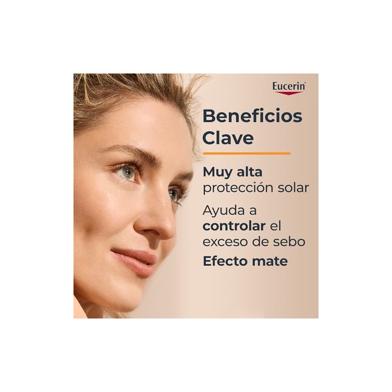 Eucerin Protector solar facial efecto mate toque seco Oil Control 50 ml, matificante control brillo 12h con antioxidantes