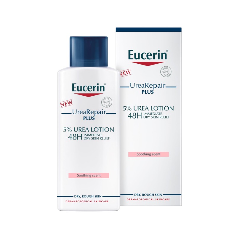 - Eucerin UreaRepair PLUS 5% Urea Lotion looks after and moisturises dry, rough skin. It provides immediate +48 hour care and relief for dry skin, now with a soothing scent.