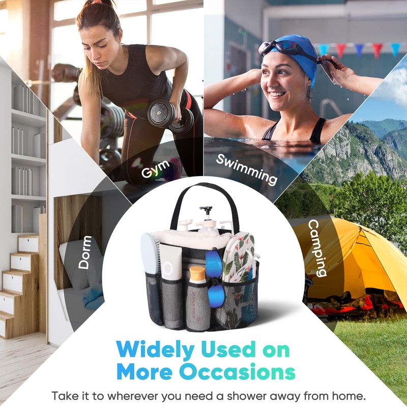 - Quick Dry, Easy Clean:Quickly get access to the needed item stored in the portable shower caddy. Breathable mesh fabric is the perfect choice for shower bags, which drains water away easily and dries up quickly. Wash and dry the shower bag at any dry and ventilated place to prolong the lifespan.
