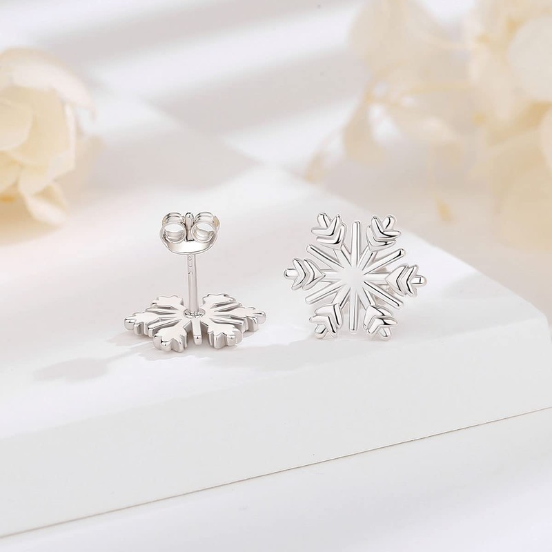 EUDORA Snowflake Earrings 925 Sterling Silver Christmas Snowflake Stud Earrings Winter Holiday Jewelry Gifts for Women Snowflake Lover