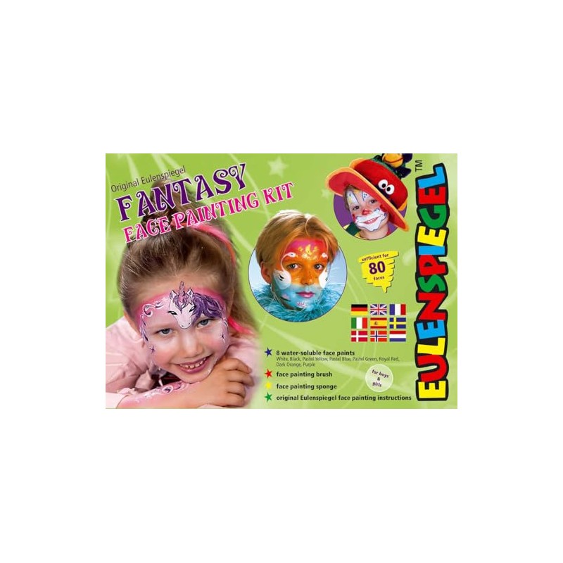 Eulenspiegel Fantasy Face 208137 Make-Up Palette, 8 Professional Aqua Colours, 1 Sponge, 1 Brush, 1 Make-up Guide