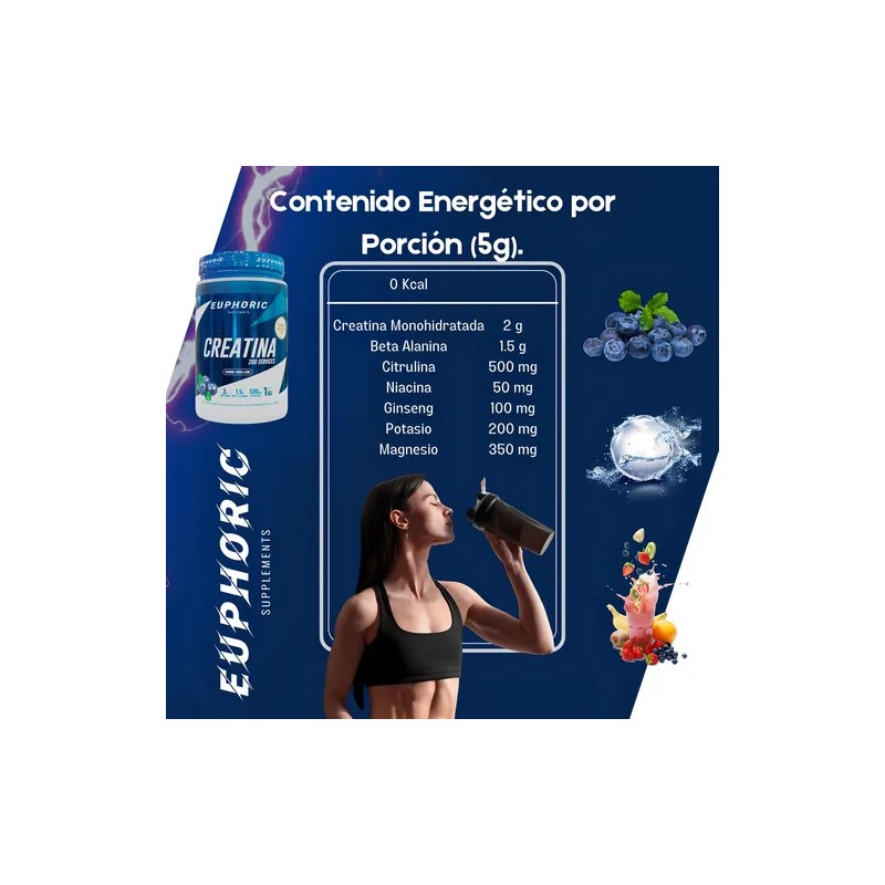 Euphoric Creatina Beta Alanina Citrulina 1 Kg 200 Servicios Sabor Mora Azul