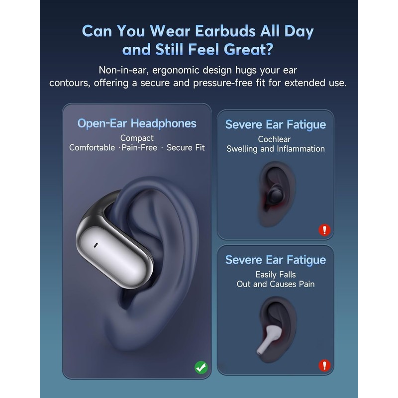 - [Hybrid Audio Mastery – Cinema-Grade Sound & 3-in-1 Versatility] 14.2mm titanium-coated drivers and quad-mic ENC system deliver immersive bass and crystal-clear calls. IPX7 waterproof, ultra-light (8g/ear) open-ear design keeps you aware during workouts, commutes, or marathon music sessions.