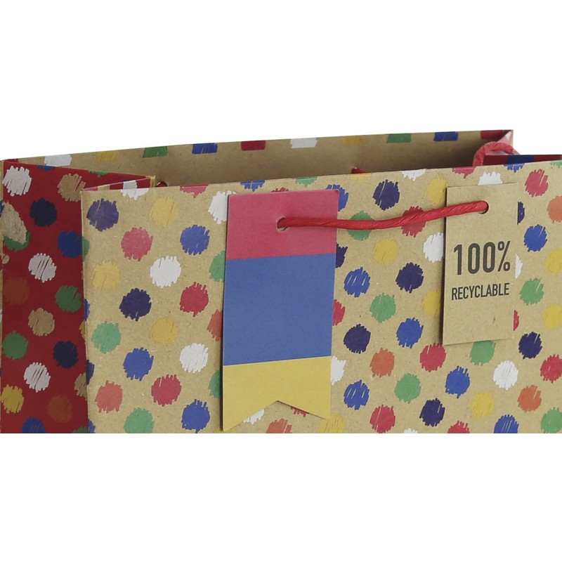 Eurowrap Multi Spots Brown Kraft Paper Gift Bag Made from 100% Recycled Paper With Gift Tag Birthday Occassions Large