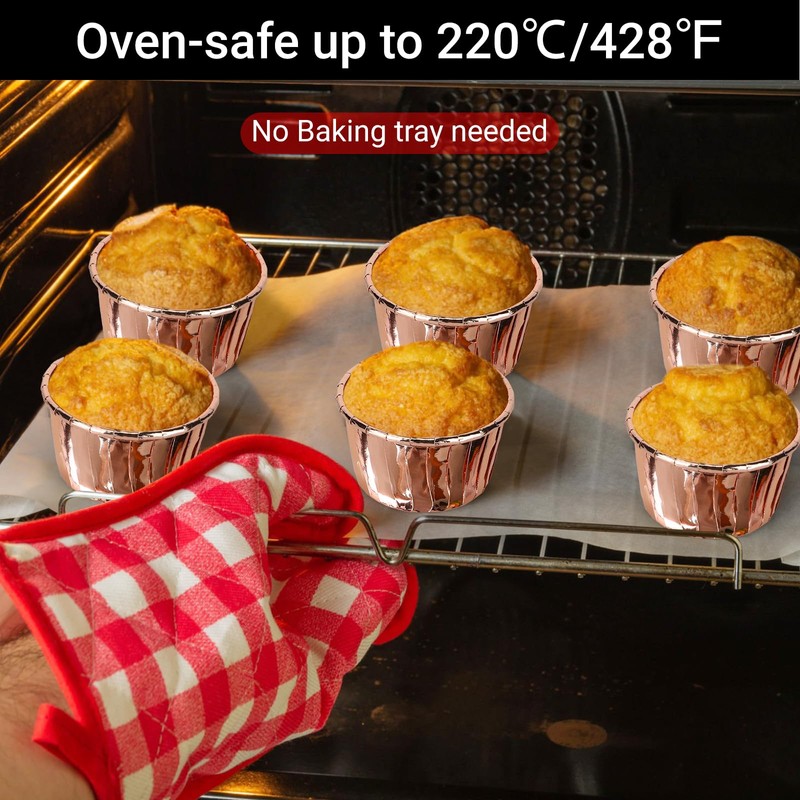 - 【No Baking tray needed】-These muffin liners are made of premium quality aluminum foil that make these strong and sturdy. Put them into the oven and bake them directly. No Baking tray needed. Please also note that these muffin cups do not need to be added with any molds, otherwise it will be like adding a fire source and it will easily stick to the bottom of the pan.