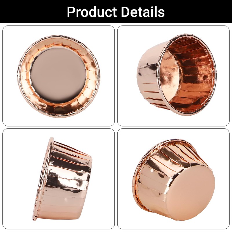 EUSOAR Cupcake Liners for Baking, 3.5oz 50pcs Disposable Champagne Mini Foil Cupcake Muffin Liners, Baking Cups with Dome Lids, Dessert Pan Containers Holders for Wedding Birthday Christmas Party