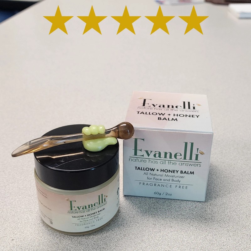Evanelli 🐝Tallow + Honey Balm🐝 moisturizer is infused with the goodness of honey, olive oil, and vitamin E. This potent blend of natural ingredients works together to deeply moisturize and rejuvenate your skin, leaving it supple, radiant, and healthy-looking.
