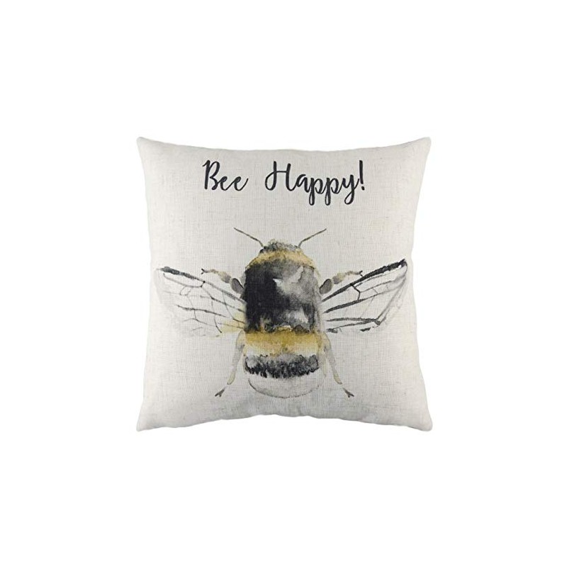 Evans Lichfield Bee Happy Cushion Cover, White, 43 x 43cm