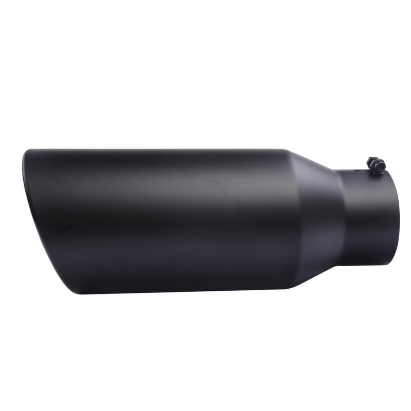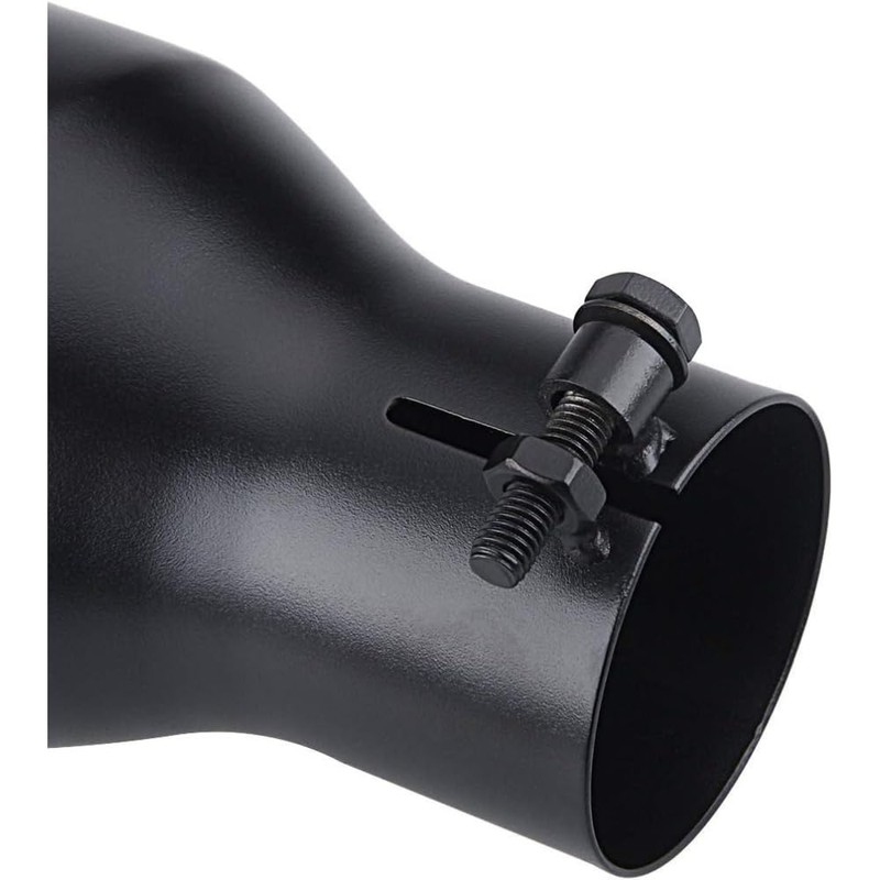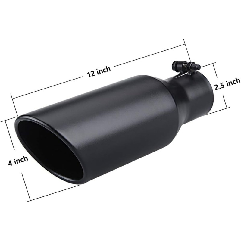 • SIZE:Standard exhaust tip size 2.5" inlet 4" outlet 12" total length,please measure the OD of your exhaust pipe before purchase