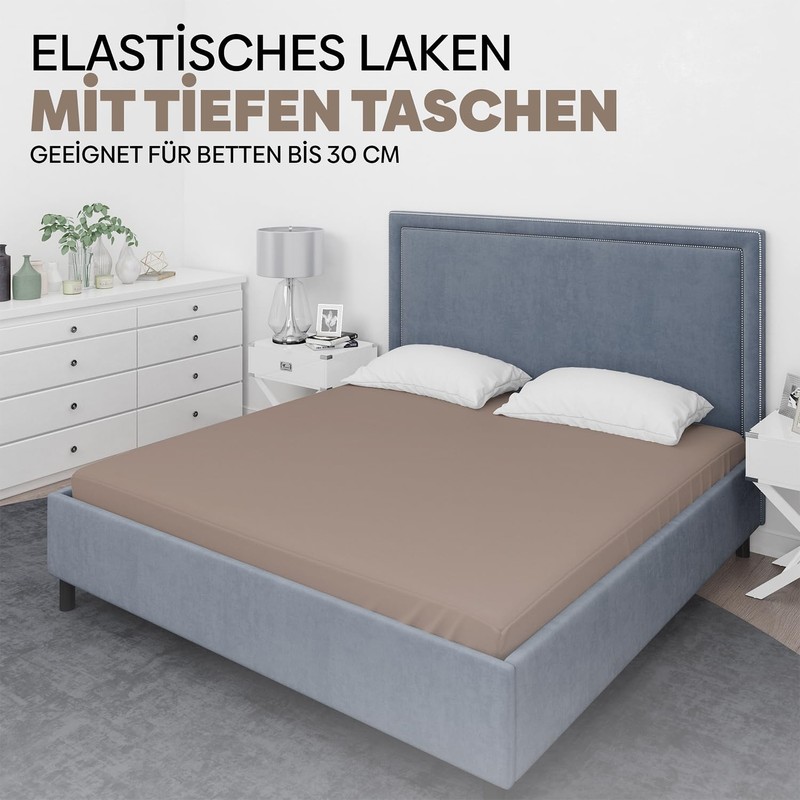 EVE Textile® Fitted Sheets Set of 2 200 x 200 cm Light Brown; Fitted Sheet Fitted Sheet; Jersey Sheet for Box Spring Bed and Mattress; Washable up to 60 Degrees; Soft and Allergy Sufferers