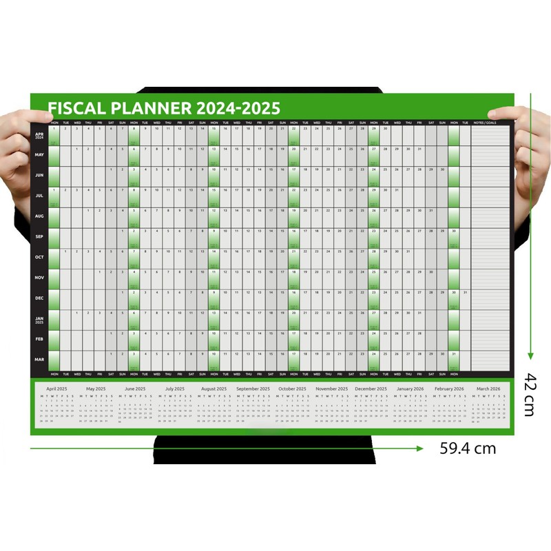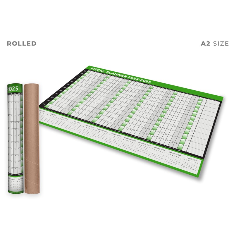 evelay Fiscal Planner 2025 2026 Wall Planner A1 Rolled (84cm x 59cm) Full Year to View Calendar with Dry Wipe Black Ink Pen & 180 Coloured Stickers Made in UK