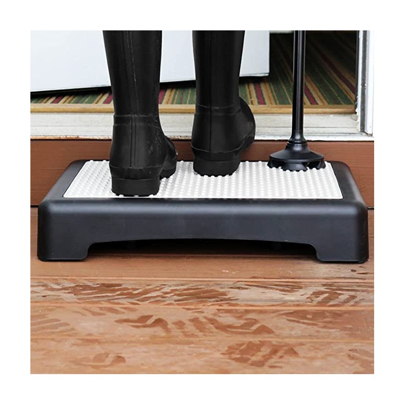 - Set of 2 Non-Slip Platforms : These sturdy polypropylene plastic slip-resistant platforms are a great choice for indoor or outdoor use. Features 12 drain holes to keep water from pooling and causing ice. 266 textured treads means better grip and less chance of slipping, creating maneuverability.