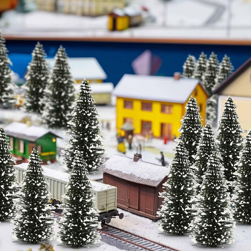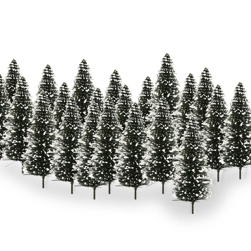 Evemodel Model Track Snow Fir Trees Snow-Covered Trees for Winter Village Landscape for Home Christmas Decoration (30 Pieces 80 mm)