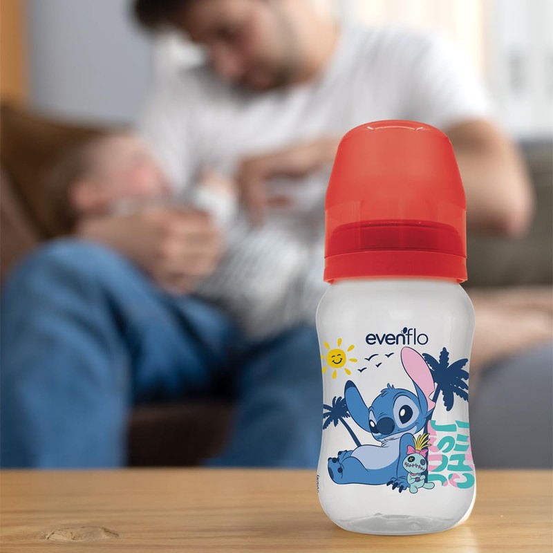 Evenflo Biberón Stitch 9OZ CA 9OZ/270 ml. 1 Pieza. El Color y Diseño Pueden Variar.