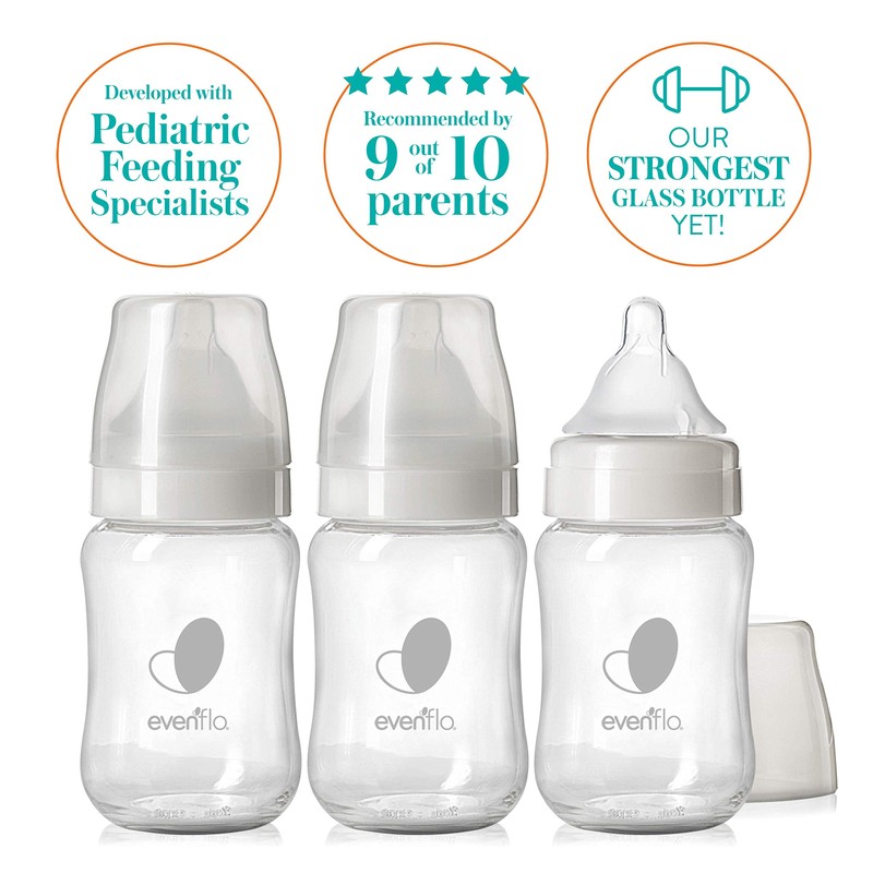 Evenflo Feeding Balance + Wide Neck Glass Bottles - 6oz 3 Pack