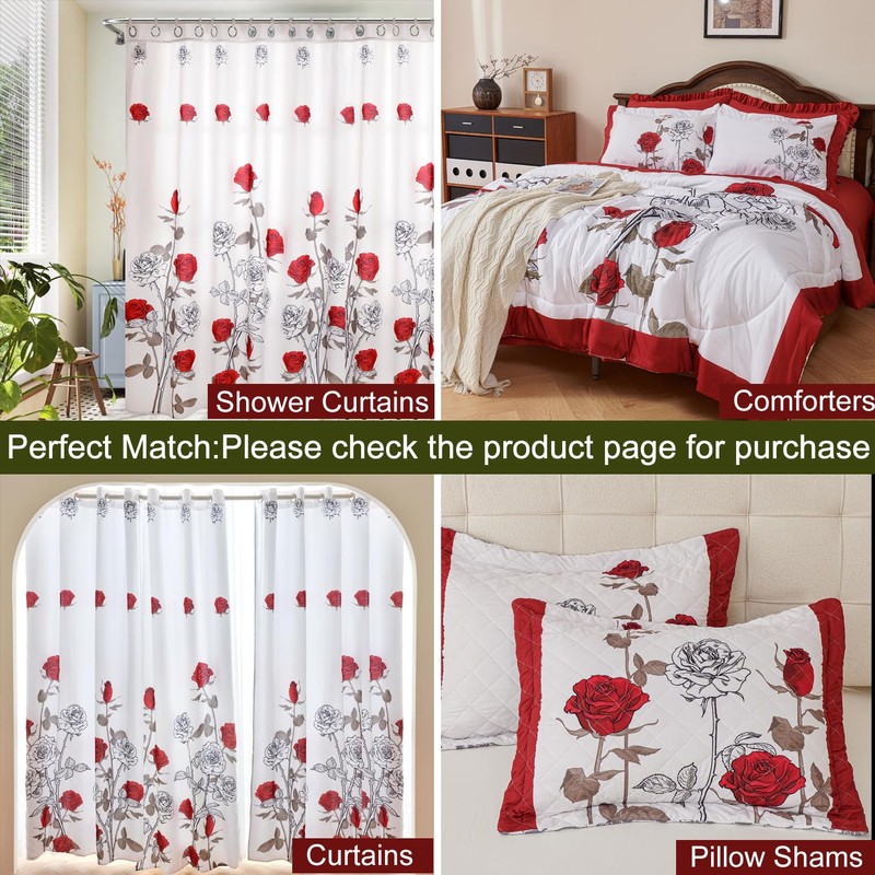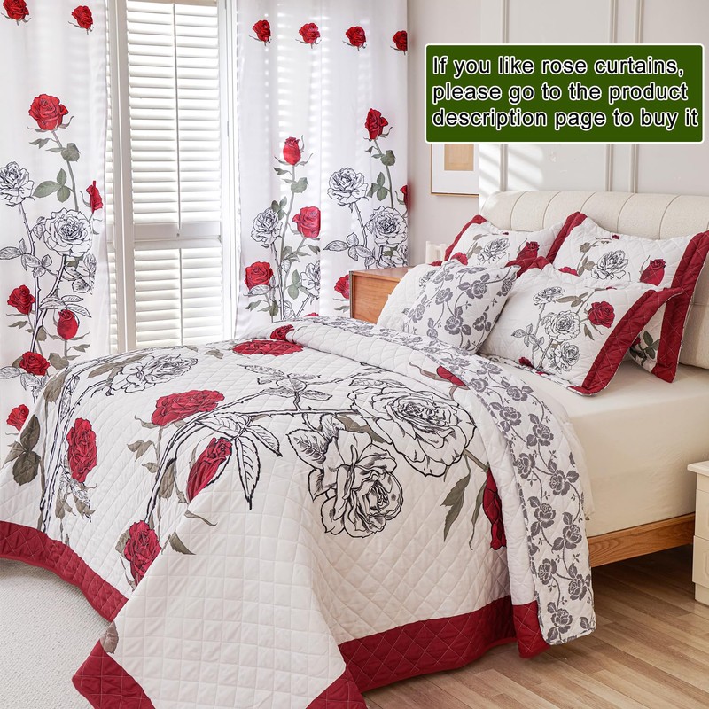 - 【WHAT YOU GET】: Queen size red floral bedding includes 1 quilt (68"x86") + 1 pillow shams (20"x26"). Rose curtains are not included, if you like curtains, please go to the product description page to buy it.